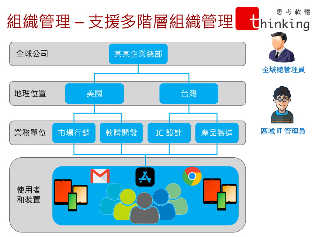 Thinking UEM 是一套完整 MDM 管理平台,主要功能與架構如下: